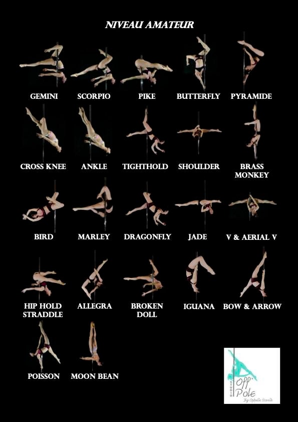 Exemples d’éléments techniques autorisés dans ce niveau : salto du sol, dragontail, jallegra, broken doll, phoenix, planche, petit jump, drop, deadlift, Janeiro, re-grip shoulder split, jade no hands, serpentine, pegasus etc.